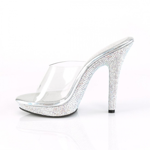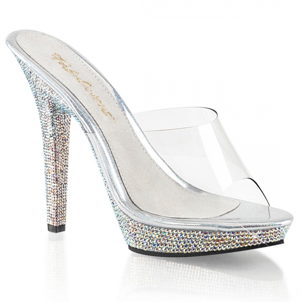 Sandalias plataforma baja con strass brillante.