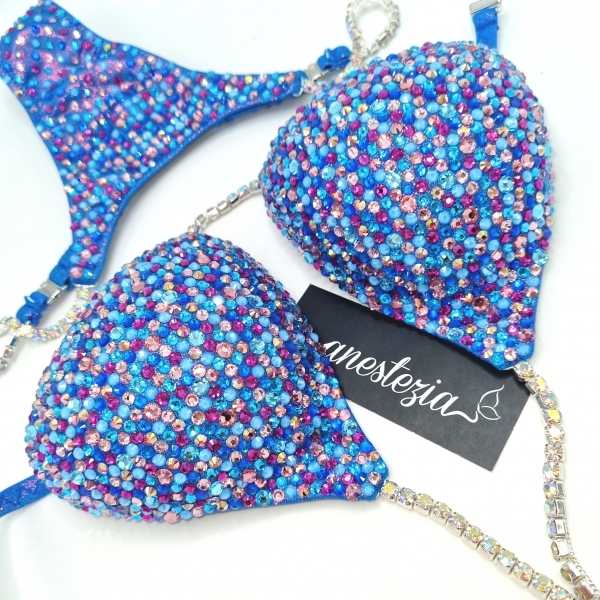 Increíble Cotton Candy es uno de nuestros nuevos diseños decorado totalmente con cristales. Mix de varios tonos de cristales cubren totalmente la tela. Este bikini es ideal para competidoras de nivel nacional e internacional.