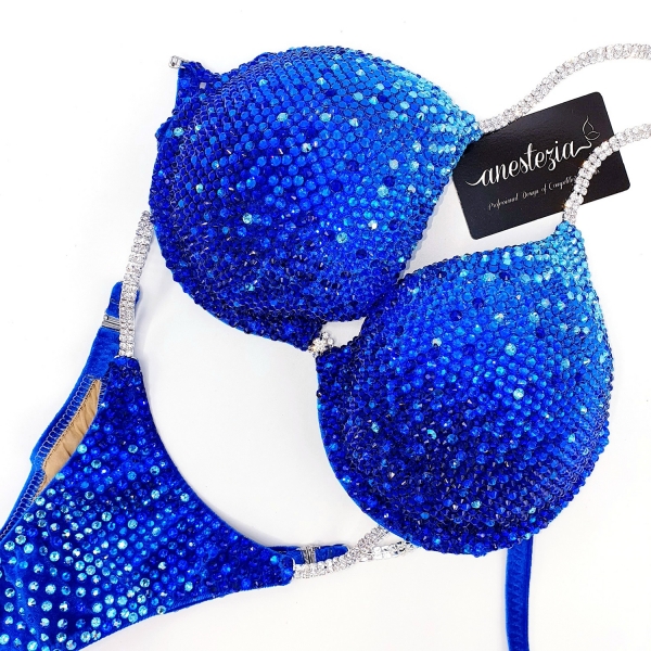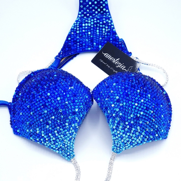 Increíble bikini Two Skies es uno de nuestros bikinis decorados totalmente con cristales. Este bikini es ideal para competidoras de nivel internacional.