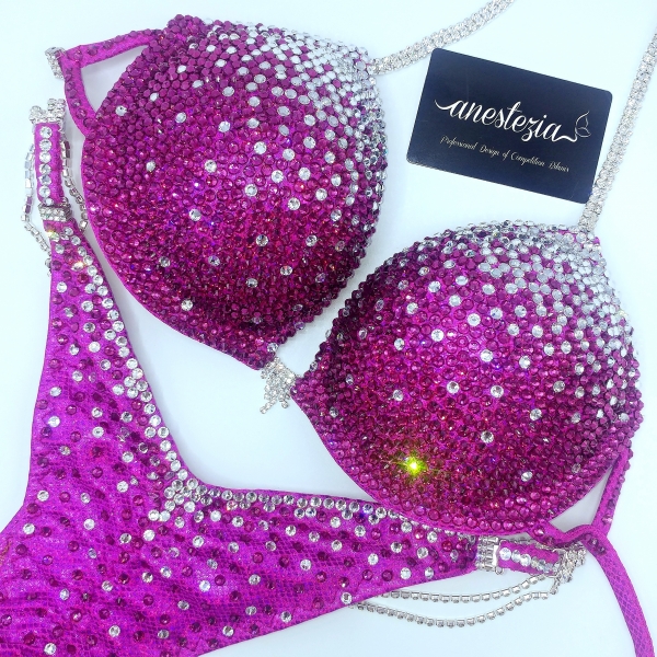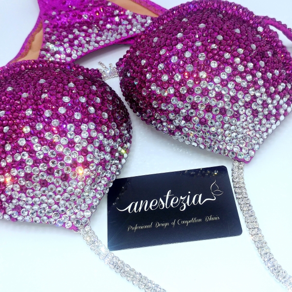 Bikini Sweet Berry es uno de nuestros espectaculares bikinis totalmente en cristales. Decorado gradual de dos colores cubriendo totalmente una tela de licra mistica. Este bikini es ideal para los niveles internacionales. Está disponible en otros colores.