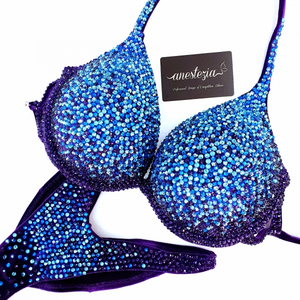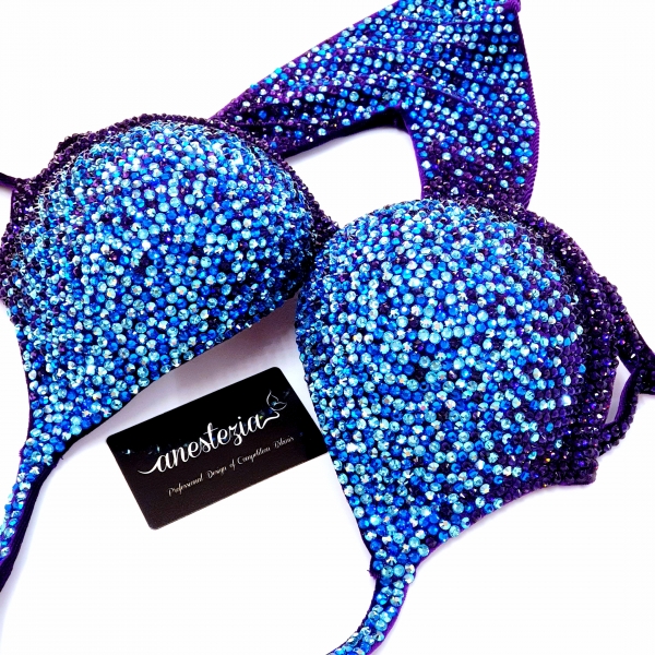 Increíble bikini de To The Moon and Back es uno de nuestros nuevos diseños con braguita estilo Ruso. Gradual de diferentes tonos de cristales color azul y violeta hacen un hermoso efecto visual. Braguita de estilo ruso y sujetador copa con aro. Este bikini es ideal para competidoras nivel internacional.
