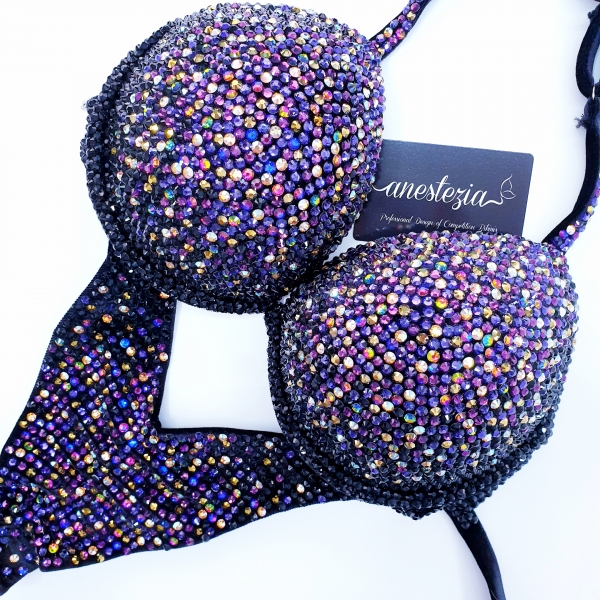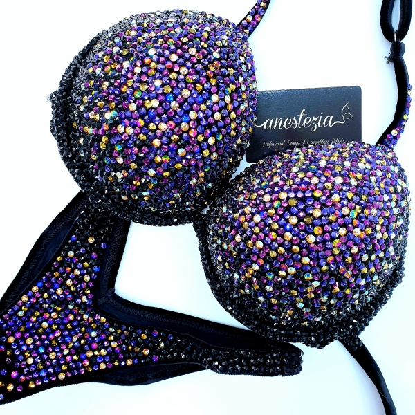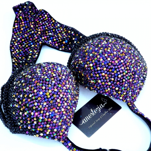 Increíble bikini de Multicolor Splash es uno de nuestros nuevos diseños con braguita estilo Ruso. Decoración gradual de diferentes tonos de cristales hacen un hermoso efecto visual. Braguita de estilo ruso y sujetador copa con aro. Este bikini es ideal para competidoras de nivel nacional e internacional.