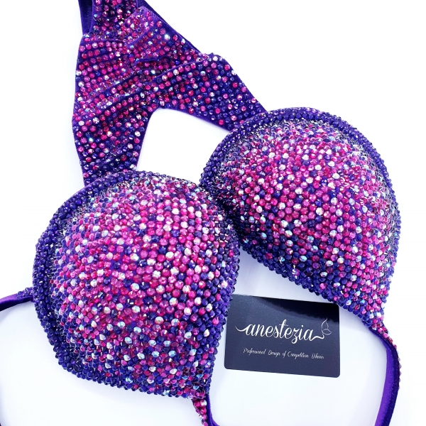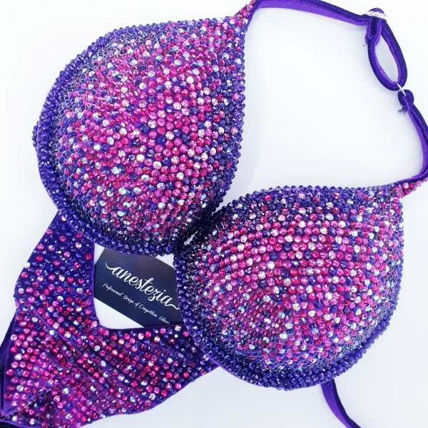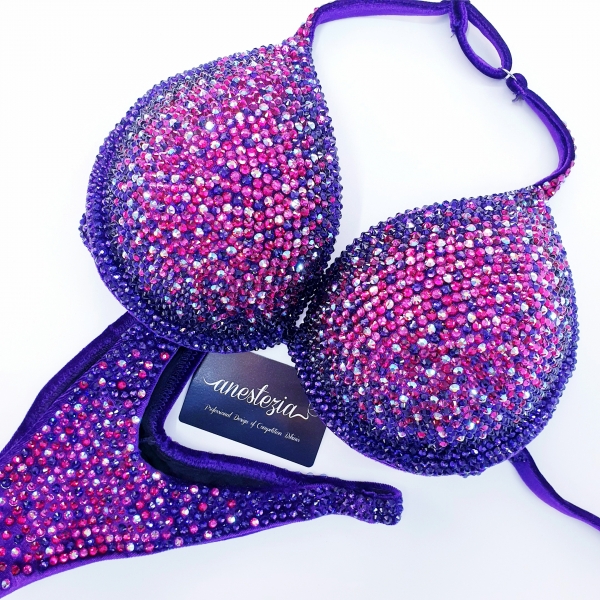 Increíble bikini de Purple Rose es uno de nuestros nuevos diseños con braguita estilo Ruso. Decoración gradual de cristales púpuras y rosas hacen un hermoso efecto visual. Braguita de estilo ruso y sujetador copa con aro. Este bikini es ideal para competidoras de nivel nacional e internacional.