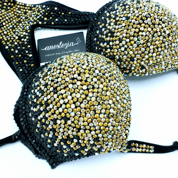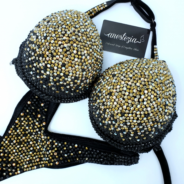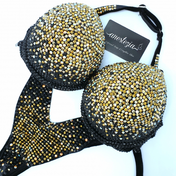 Increíble bikini de Golden Gates es uno de nuestros nuevos diseños con braguita estilo Ruso. Decoración gradual de diferentes tonos de cristales color oro hacen un hermoso efecto visual. Braguita de estilo ruso y sujetador copa con aro. Este bikini es ideal para competidoras de nivel nacional e internacional.