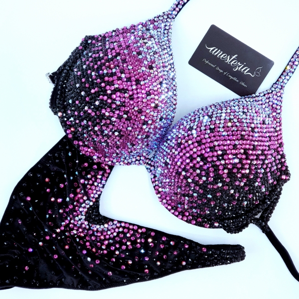Increíble bikini de Fuchsia Luxe Queen es uno de nuestros bikinis línea de lujo. Gradual de 3 colores cubren totalmente la tela. Braguita de estilo ruso. Este bikini es ideal para competiciones de nivel nacional e internacional.