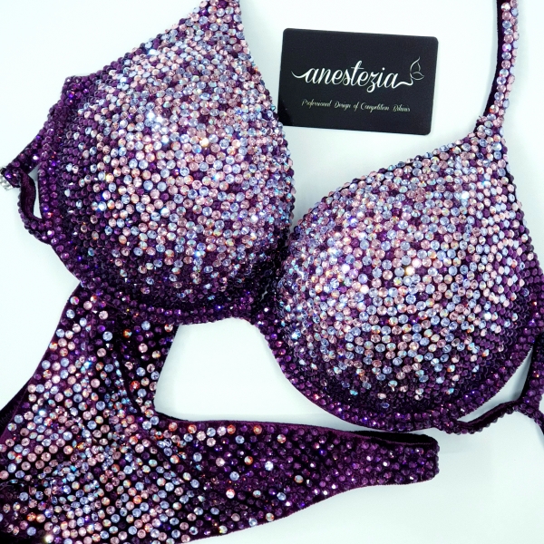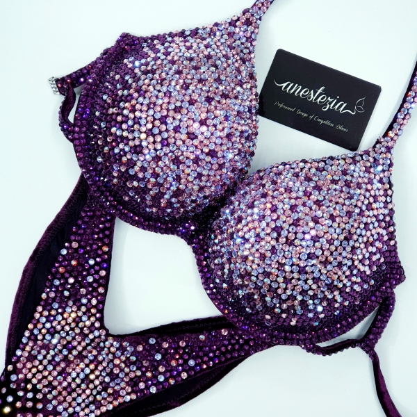 Increíble bikini de Blueberry Sorbet es uno de nuestros nuevos diseños con braguita estilo Ruso. Decoración gradual de cristales color Baby Pink y purpura hacen un hermoso efecto visual. Braguita de estilo ruso y sujetador copa con aro. Este bikini es ideal para competidoras de nivel nacional e internacional.