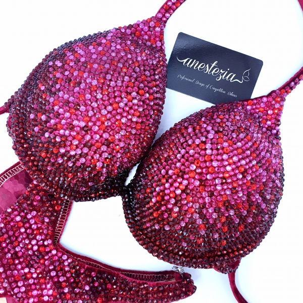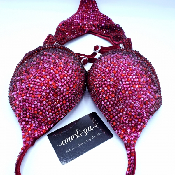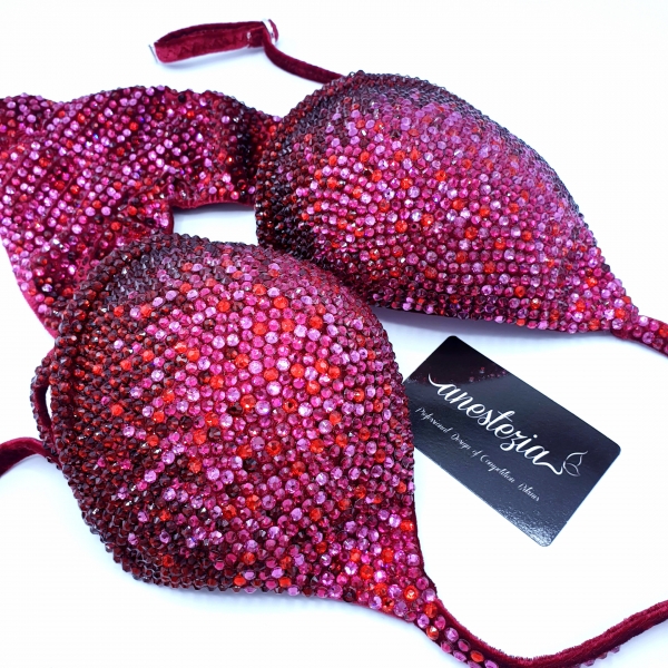 Increíble bikini Cherry Lady es uno de nuestros nuevos diseños total en cristales de estilo ruso. Gradual de 4 tonos de cristales hacen un hermoso efecto visual. Braguita de estilo ruso y sujetador copa con aro. Este bikini es ideal para competidoras nivel internacional.