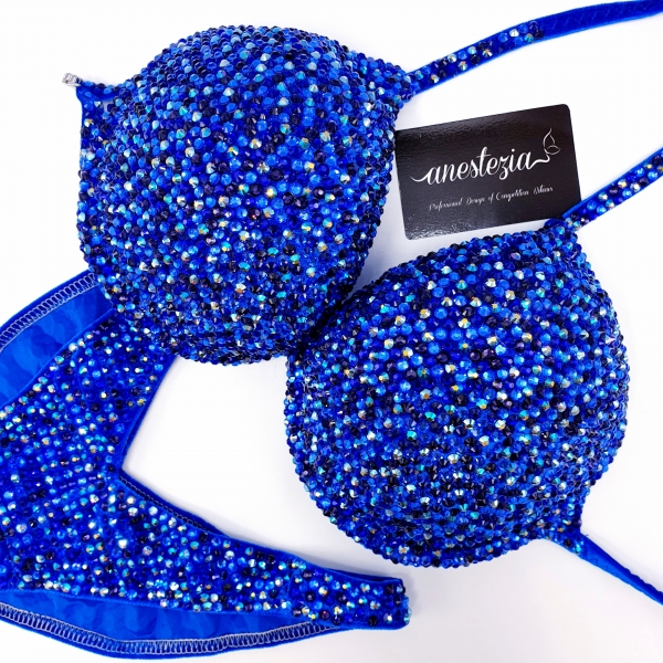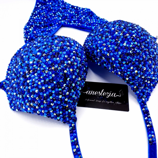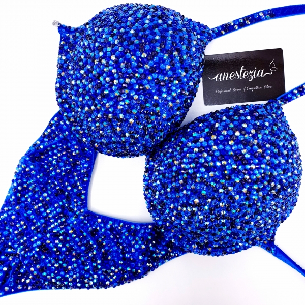 Increíble bikini Indigo Eyes es uno de nuestros bikinis línea de lujo. Mix de 6 colores cubren totalmente la tela. Sujetador copa con aros y braguita de estilo ruso. Este bikini es ideal para competiciones de nivel nacional e internacional.