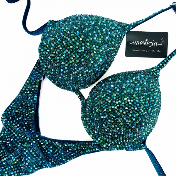 Increíble bikini Pretty Woman es uno de nuestros bikinis línea de lujo. Mix de 6 colores cubren totalmente la tela. Elegante terciopelo verde. Sujetador copa con aros y braguita de estilo ruso. Este bikini es ideal para competidoras de nivel nacional e internacional.