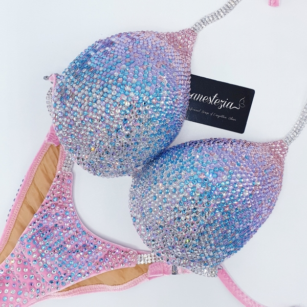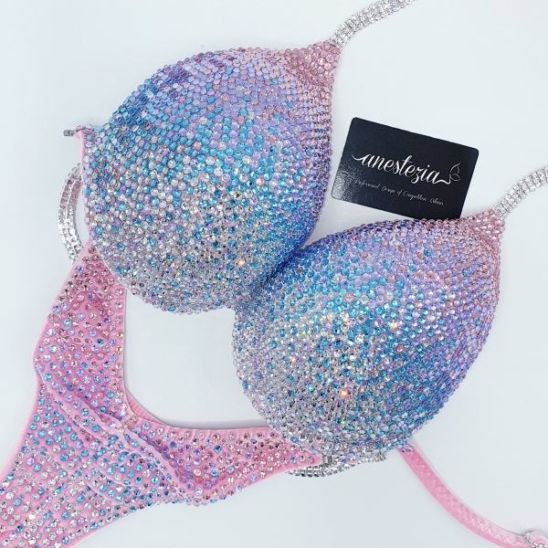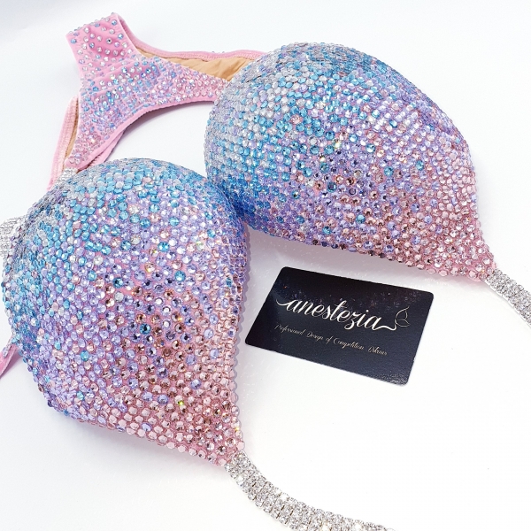 Increíble bikini Candy Girl es uno de nuestros nuevos diseños total en cristales. Gradual de 4 tonos de cristales hacen un hermoso efecto visual. Este bikini es ideal para competidoras nivel internacional.
