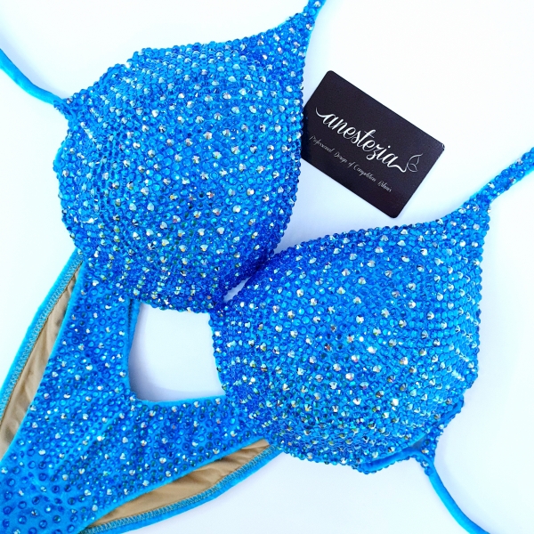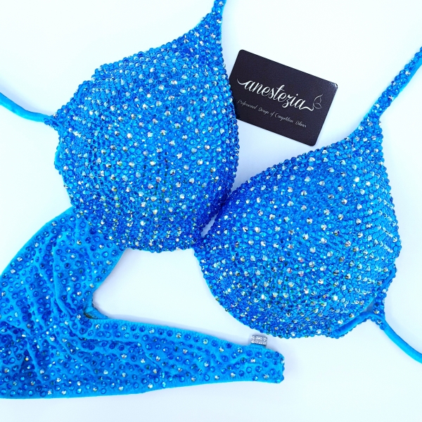 Magnífico bikini Aqua Girl es creado para una Reina real. Está totalmente cubierta con cristales y su brillo es especial .Este bikini luce especialmente hermoso por su combinación de colores.