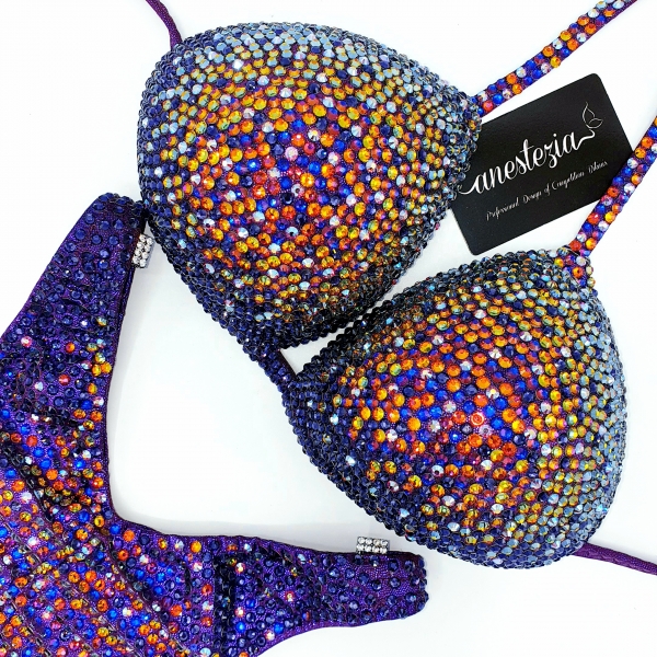 Espectacular Rainbow of Dreams posing suit es uno de nuestros nuevos diseños especiales para body fitness y Women`s Phisique. Es muy diferente de la mayoría de los diseños que se pueden ver durante las competiciones gracias a sus cristales con efecto camaleónico que cambian de color cuando uno se mueve.