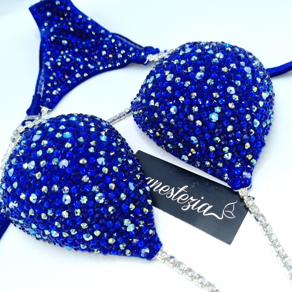 Increíble bikini de Cobalt Queen es uno de nuestros nuevos diseños decorado totalmente con cristales. Mix de varios tonos de cristales cubren totalmente la tela. Este bikini es ideal para competidoras de nivel nacional e internacional, luce magnífica con tu tono de piel.