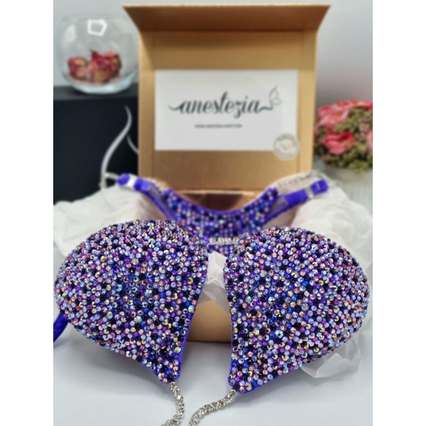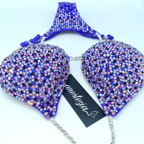 Increíble bikini Velvet Treasure es uno de nuestros nuevos diseños decorado totalmente con cristales. Mix de varios tonos de cristales cubren totalmente la tela. Este bikini es ideal para competidoras de nivel nacional e internacional.