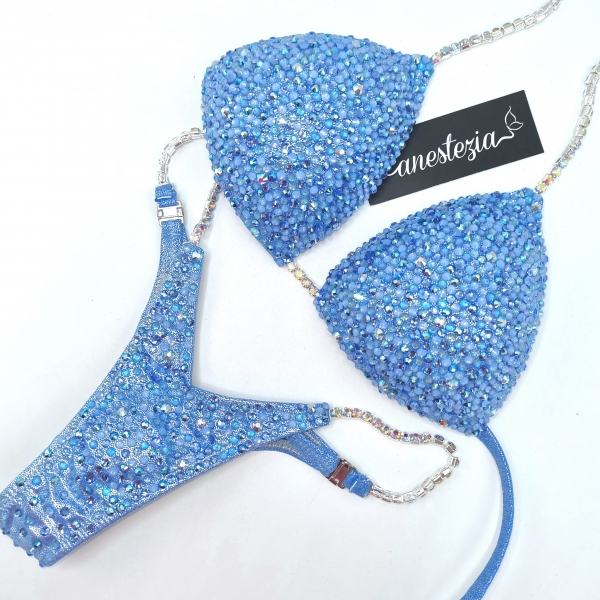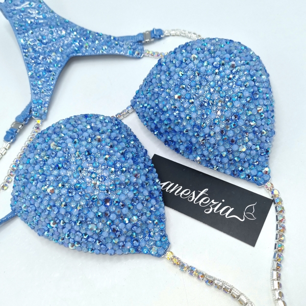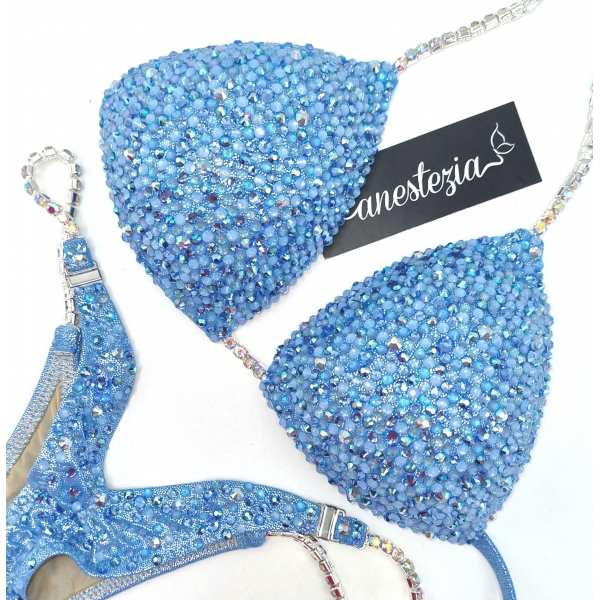 Increíble bikini Blue Matcha es uno de nuestros nuevos diseños decorado totalmente con cristales. Mix de varios tonos de cristales cubren totalmente la tela. Este bikini es ideal para competidoras de nivel nacional e internacional.