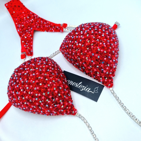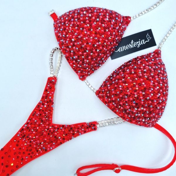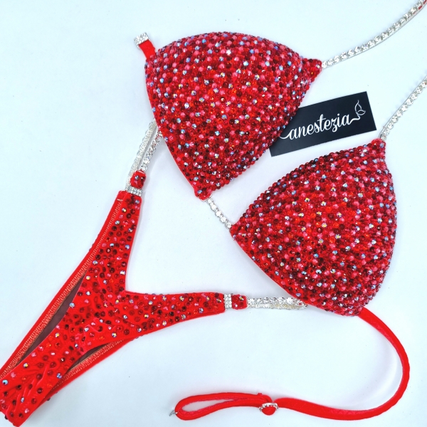 Increíble Red Flower es uno de nuestros nuevos diseños decorado totalmente con cristales. Mix de varios tonos de cristales cubren totalmente la tela. Este bikini es ideal para competidoras de nivel nacional e internacional.