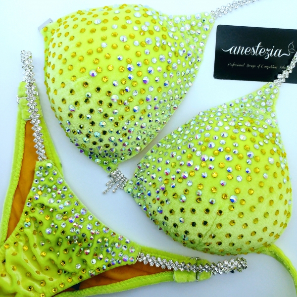 Increible bikini Sunlight se crea para que brilles como una estrella en el escenario! Hermosa combinación de terciopelo amarillo y cristales de diferentes tonos y medidas hacen que este bikini sea muy especial y atractivo. Luce fantástico en Princesas de cabello rubio o moreno!!