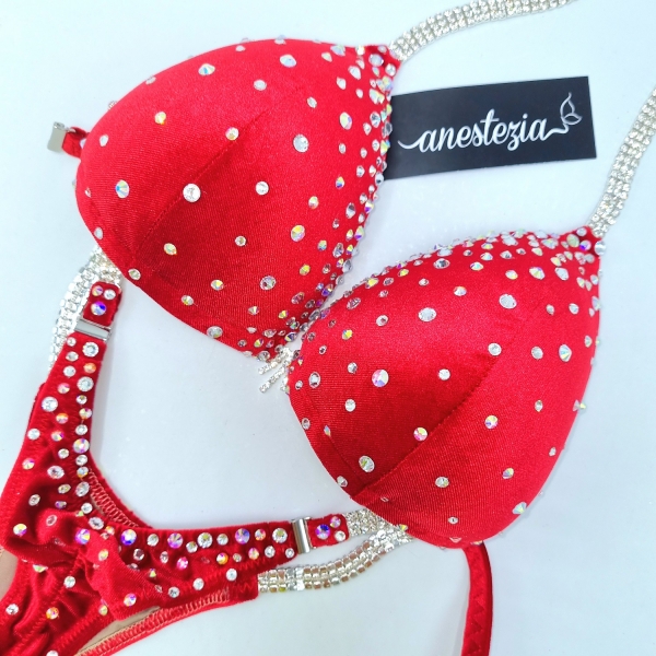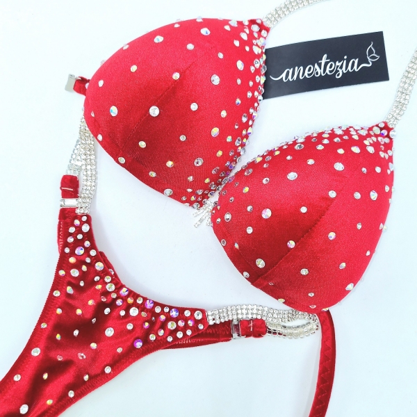 Brillante y elegante Deep Red Girl es uno de nuestros preciosos bikinis decorados de bajo coste con 5 conctores. Se produce a partir de un elegante terciopelo y decorado con degradé de cristales. Es perfecto para atletas con cabello oscuro o rubio.