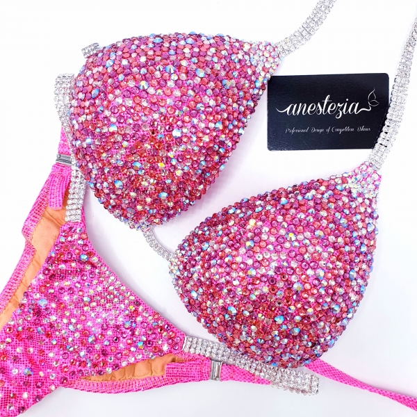 Increíble bikini de Barbie´s Kiss es uno de nuestros nuevos diseños Estilo Americano. Decoración de cristales AB y mix de cristales rosas hacen un hermoso efecto visual. Este bikini es ideal para competidoras de nivel nacional e internacional.