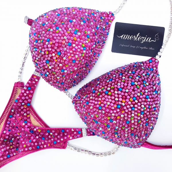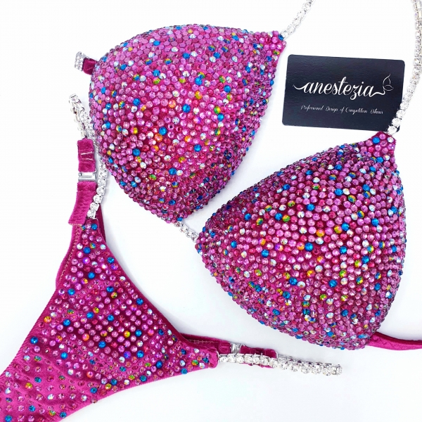 Increíble bikini Believe In You es uno de nuestros bikinis línea de lujo. Mix de 5 colores cubren totalmente la tela. Este bikini es ideal para competidoras de nivel nacional e internacional.