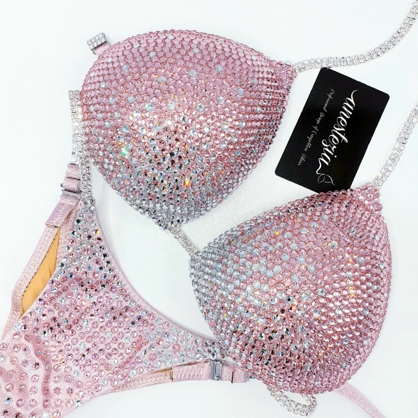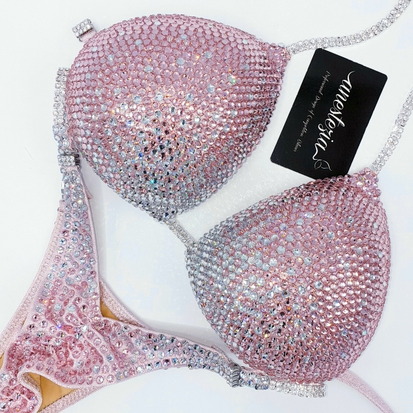 Increíble bikini de Pink Wings of Angel es uno de nuestros nuevos diseños. Decoración gradual con cristales claros y rosas suaves que cubren totalmente la tela. Este bikini es ideal para competidoras de nivel nacional e internacional, luce magnífica con tu tono de piel.