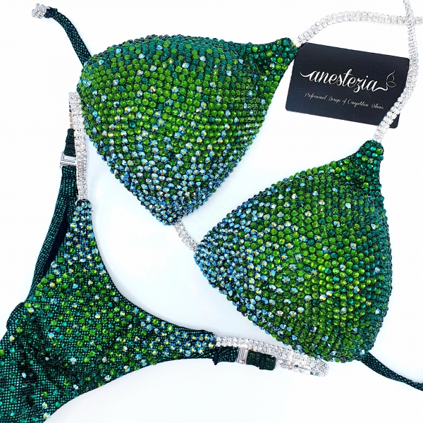 Increíble bikini Peacock Wings es uno de nuestros bikinis línea de lujo. Gradual de 3 colores cubren totalmente la tela. Este bikini es ideal para competidoras nivel nacional e internacional.