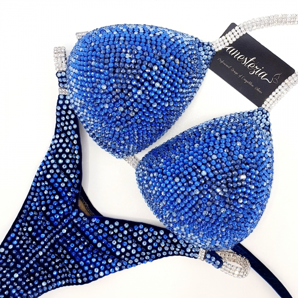 Increíble bikini de Mermaid´s Kiss es uno de nuestros bikinis línea de lujo. Gradual de 4 colores cubren totalmente la tela. Hermoso contraste de cristales y tela, hacen que sea muy atractivo. Este bikini es ideal para competidoras nivel nacional e internacional.