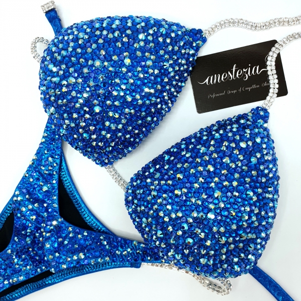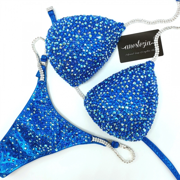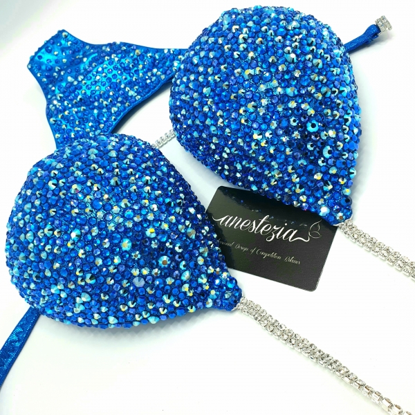 Briliante bikini Turkish Star es uno de nuestros espectaculares bikinis total cristales. Tela color Azul turquesa profundo cubierto totalmente en cristales de 3 colores del cual 1 tiene efecto AB.( pequeños y grandes) Este bikini brilla como un diamante en el escenario.