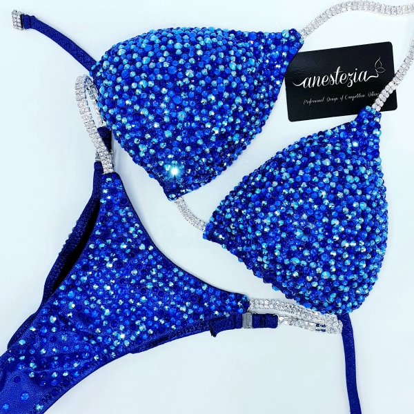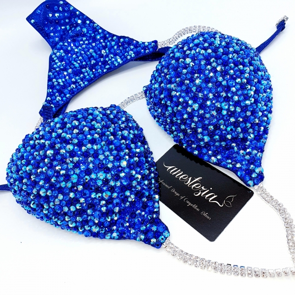 Briliante bikini Indigo Rain es una de nuestros espectaculares bikinis. Mix único de cristales azules en elegante licra mística azul oscuro es exactamente lo que necesita para brillar como un diamante en el gran escenario.