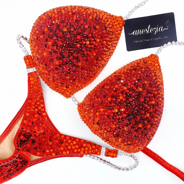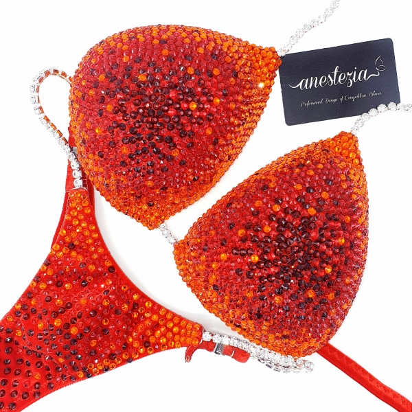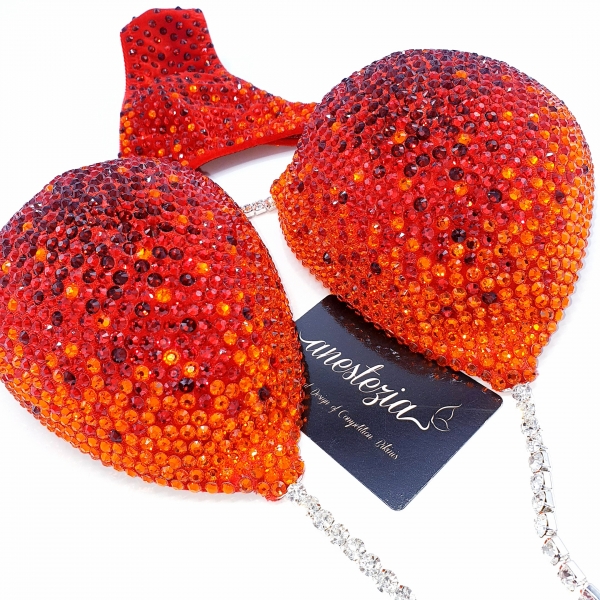 Increíble bikini de Volcano in paradise es uno de nuestros nuevos diseños decorado totalmente con cristales. Decoración gradual con 3 cristales cubren totalmente la tela de terciopelo. Este bikini es ideal para competidoras de nivel nacional e internacional, luce magnífica con tu tono de piel.